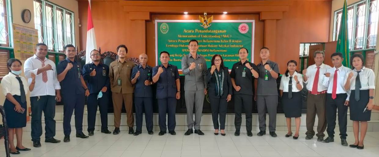 POSBAKUMADIN Kefamenanu dengan Status Ter-Akreditasi Kementerian Hukum dan HAM sejak 2013 sampai sekarang, VERASI (Verifikasi & Akreditasi) OBH (Organisasi Bantuan Hukum) Tahun 2021 yang lalu tetap dinyatakan lulus. Sehingga Advokat Senior Adelci J.A.Teiseran, SH bertekat untuk meningkatkan kinerja Tahun Anggaran 2022 karena Pencari Keadilan di dalam maupun di luar Pengadilan Negeri Kefamenanu meningkat 100% (setatus persen) setiap tahunnya karena masyarakat telah mengenal dan mengetahui adanya YANBANKUM GRATIS dan itulah antara lain Program POSBAKUMADIN hadir di tengah masyarakat untuk memberikan Pengayoman dan Perlindungan Hak Hukum dan Hak Asasi Manusia bagi Warga Masyarakat Kabupaten Kefamenanu di Provinsi Nusa Tenggara Timur. (AJAT)