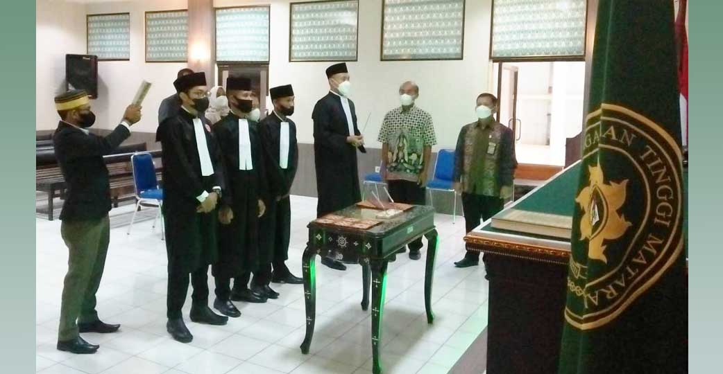 Mataram (Varia Advokat), 10 Maret 2022 – Pada hari ini Kamis,10 Maret 2022 Dewan Pimpinan Wilayah Perkumpulan Advokat Indonesia (PERADIN) Nusa Tenggara Barat telah melaksanakan Pelantikan dan Penyumpahan Advokat PERADIN sebanyak 4 orang di Ruang Sidang Pengadilan Tinggi Mataram, Jalan Majapahit No.46 Kota Mataram. Penyelenggaraan acara ini sesuai dengan surat bernomor W25.U/606/HK.02/III/2022 yang dikeluarkan Pengadilan Tinggi Nusa Tenggara Barat.