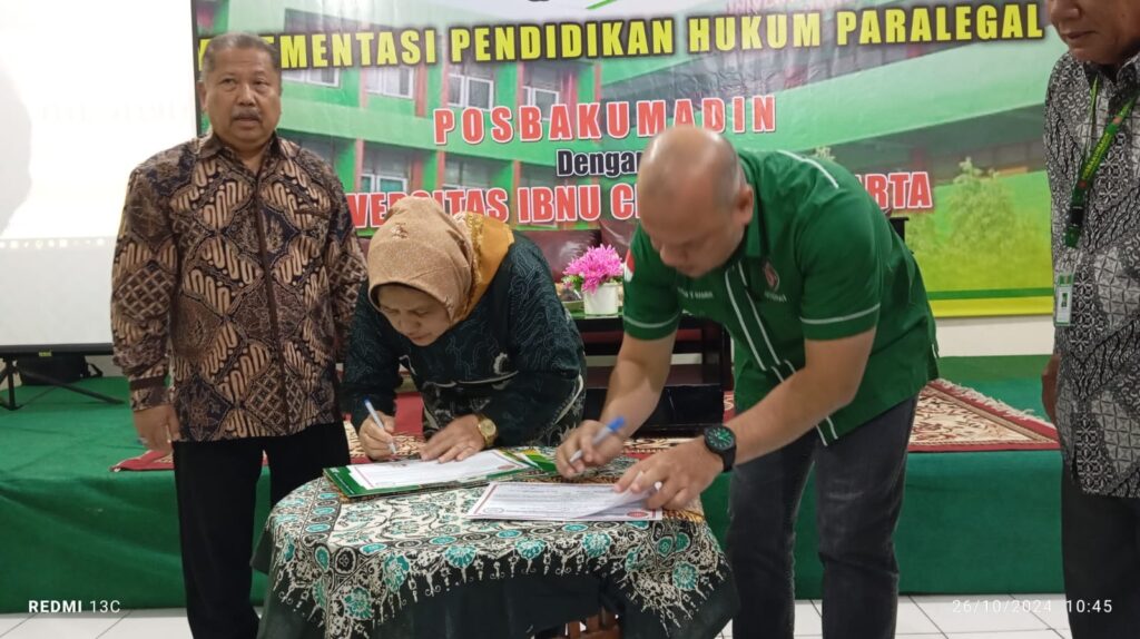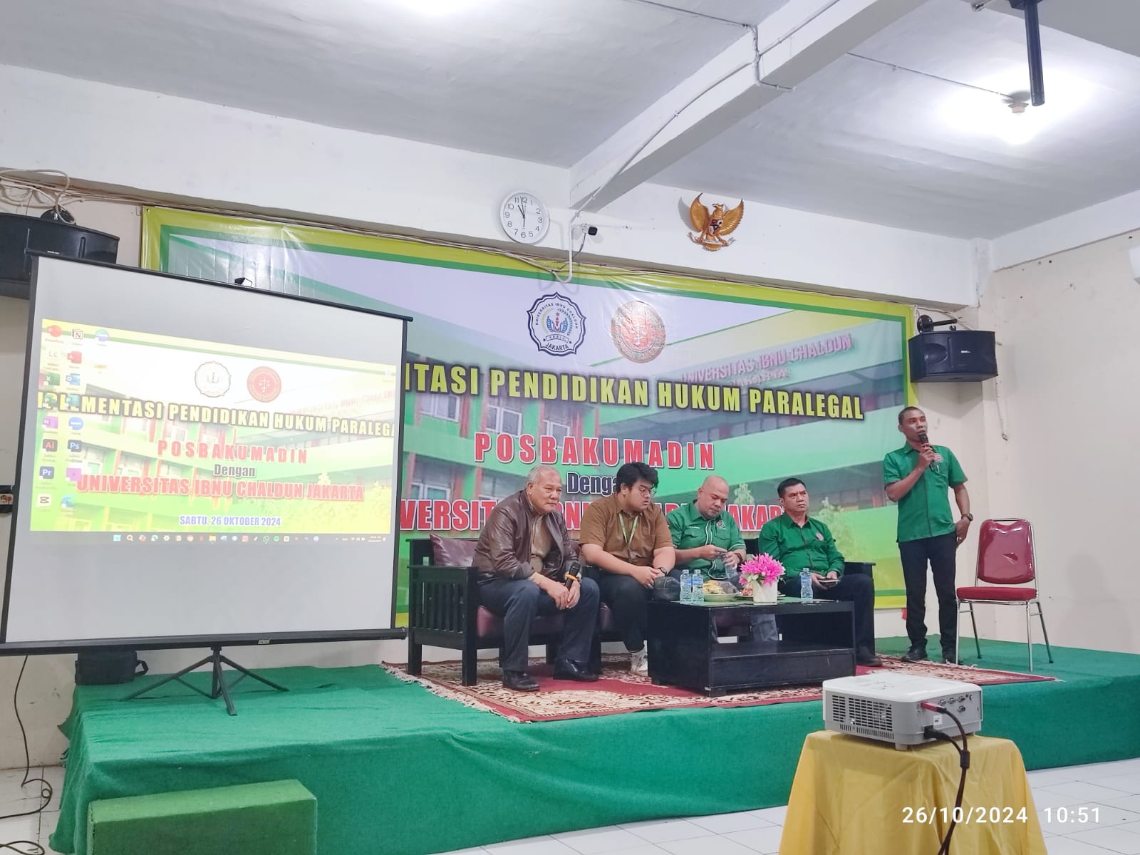 Jakarta (Varia Advokat), 26 Oktober 2024 – di Kampus Universitas Ibnu Chaldun menjalin kerja sama (MoU) dengan POSBAKUMADIN PUSAT mengenai penyelenggaran Pendidikan Hukum Paralegal dengan predikat gelar CPLA (Certified Paralegal of Legal Aid). Dengan maksud membuka Lapangan Kerja dan membantu serta memudahkan akses bagi pencari keadilan.