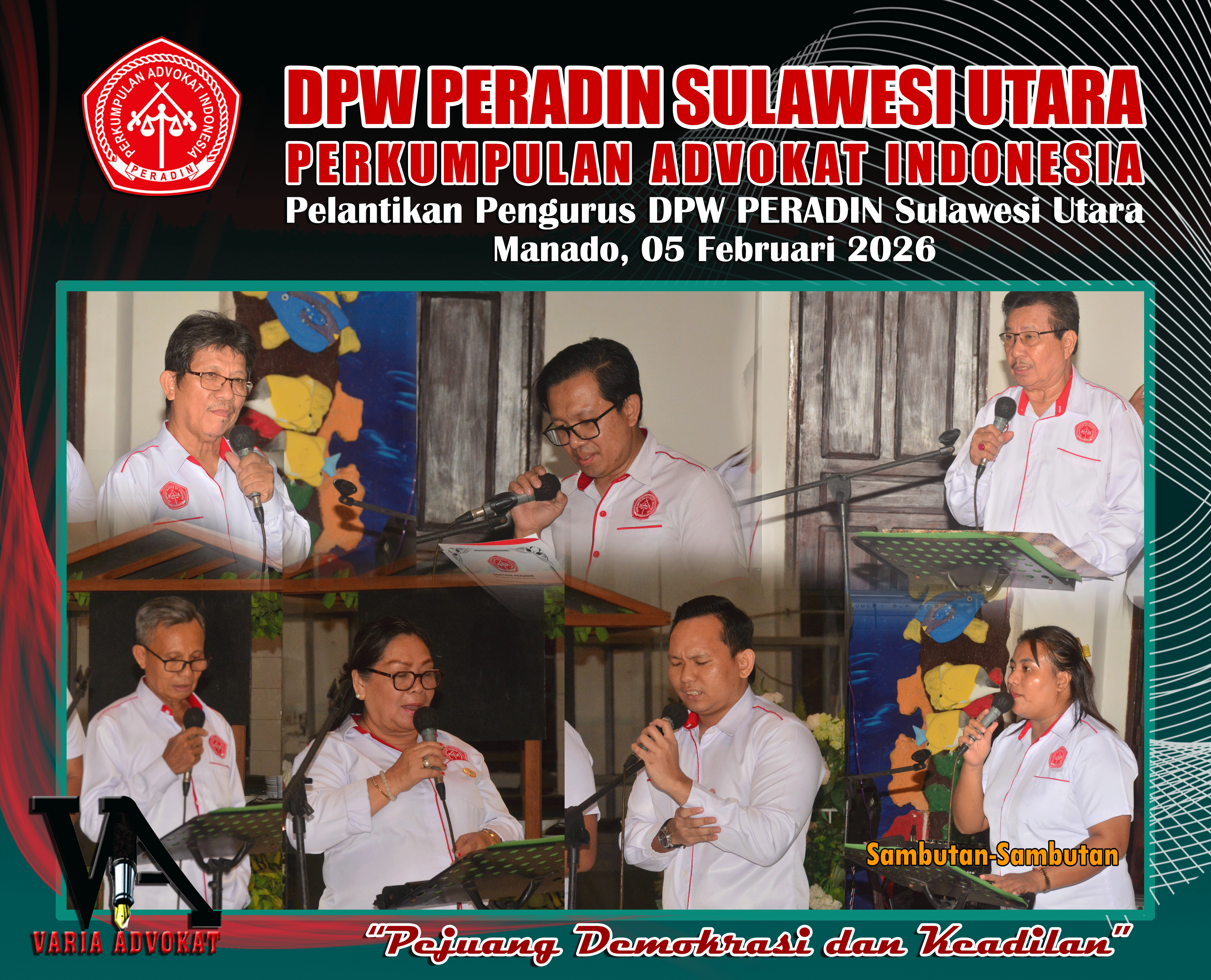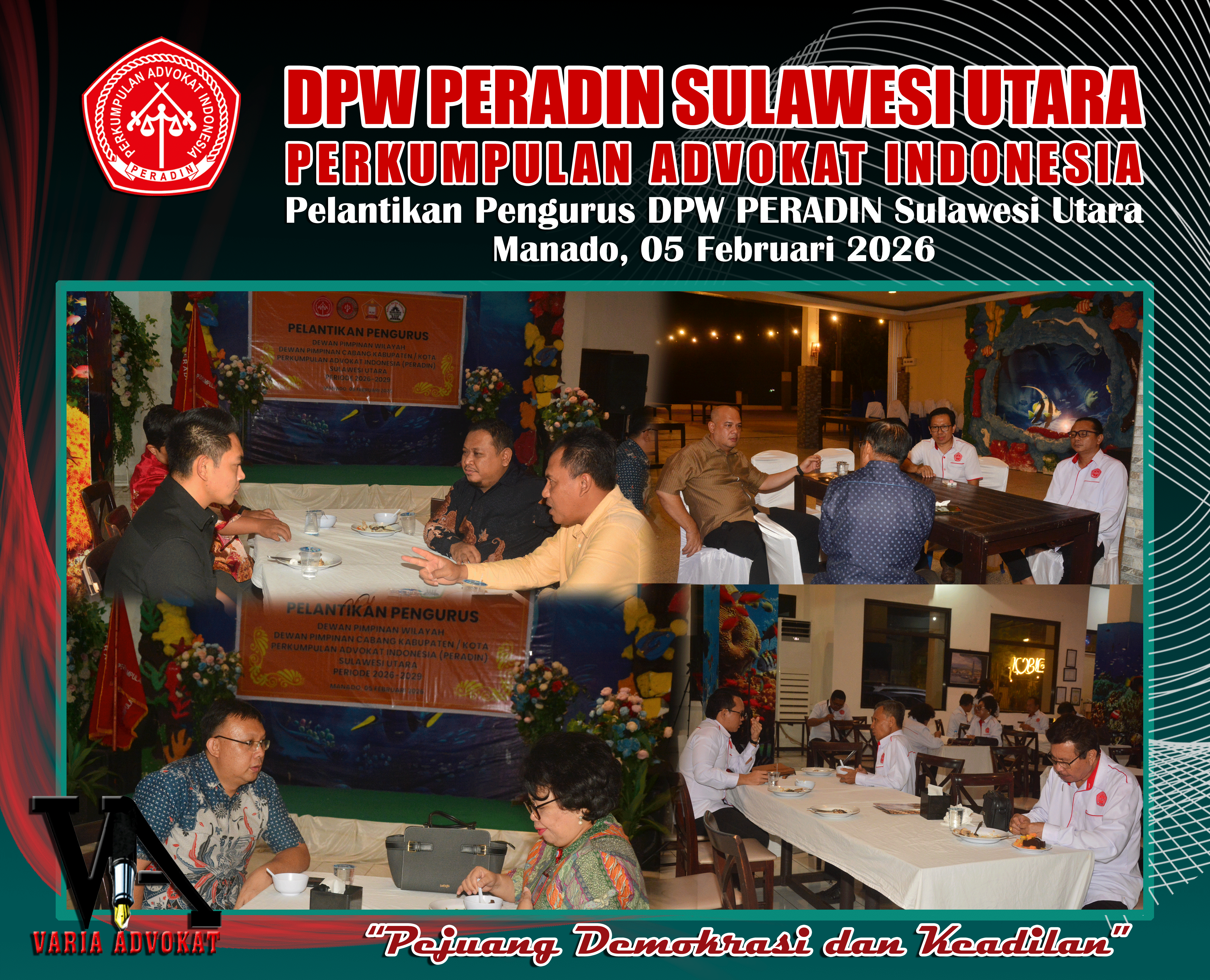 Manado, 5 Februari 2026 – Dewan Pimpinan Wilayah (DPW) Perkumpulan Advokat Indonesia (PERADIN) Sulawesi Utara resmi dilantik untuk masa bakti 2024–2029 pada Kamis, 5 Februari 2026, bertempat di Big Fish Restaurant, Bahu Mall, Manado.